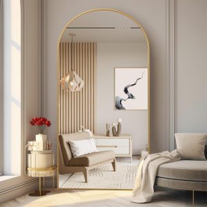 Arched Full Length Mirror, 71×32 Oversized Floor Mirror with Stand, Gold Mirror Full Length, Aluminum Full Body Dressing Mirrors with Arched-Top, Leaning for Living Room, Bedroom