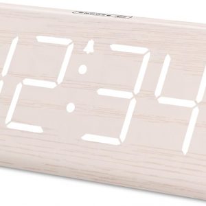 DreamSky Wooden Digital Alarm Clock for Bedroom – Living Room Desk Clock with Large Numbers, Bedside Nightstand Clock with USB Port, Adjustable Volume, Dimmer, DST, Office Wood Décor, Adapter Powered