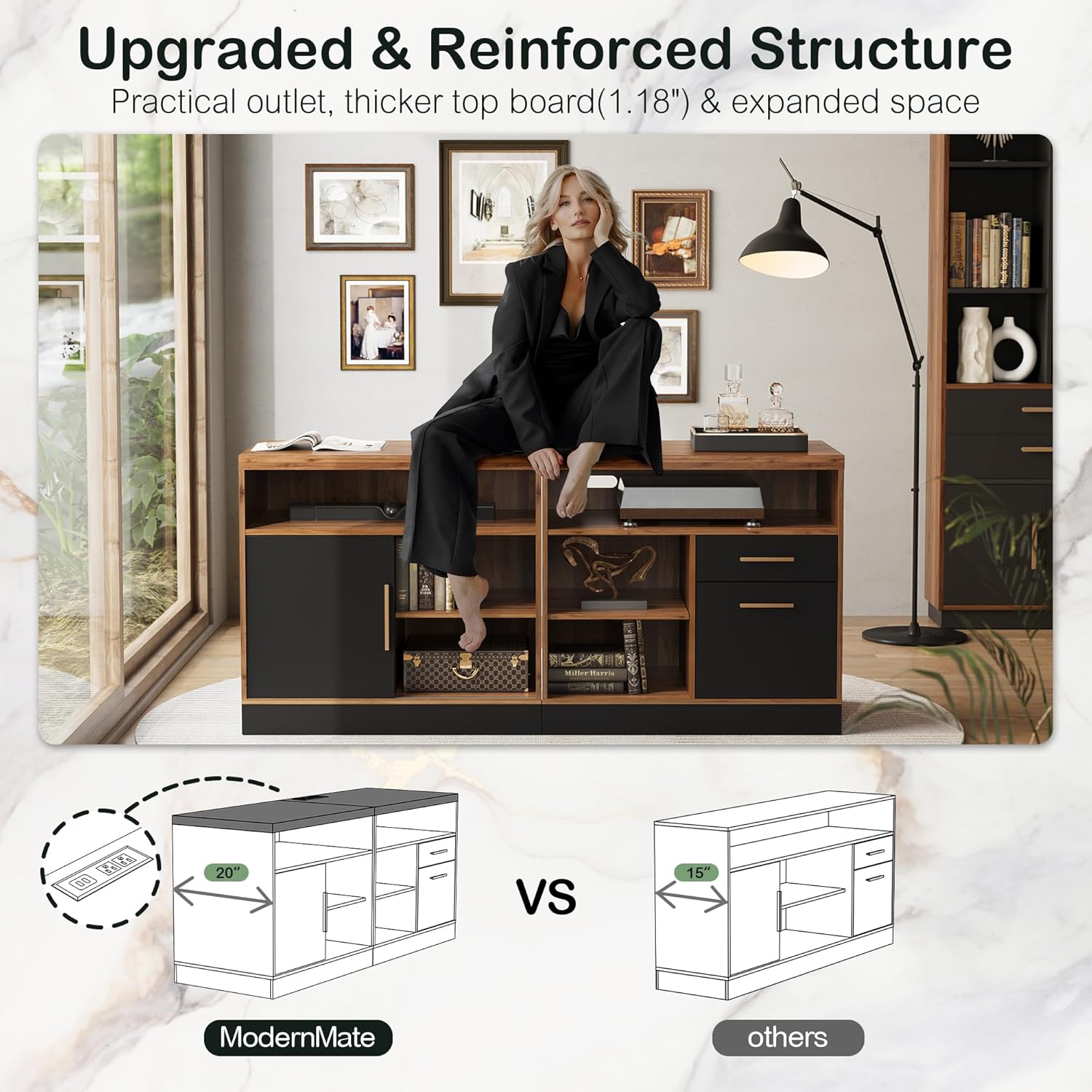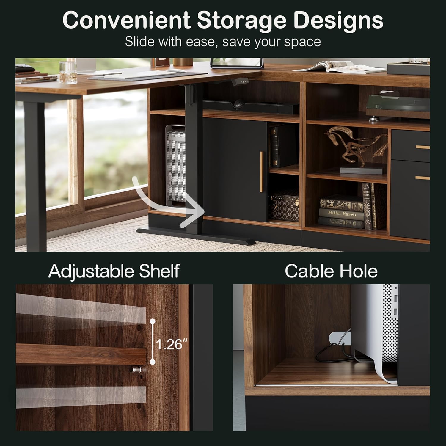 • Space-Saving Design:Our office credenza is designed with a unique horizontal sliding door that opens smoothly while minimizing space usage. It allows you to store larger items like a computer tower inside, keeping your workspace tidy and organized