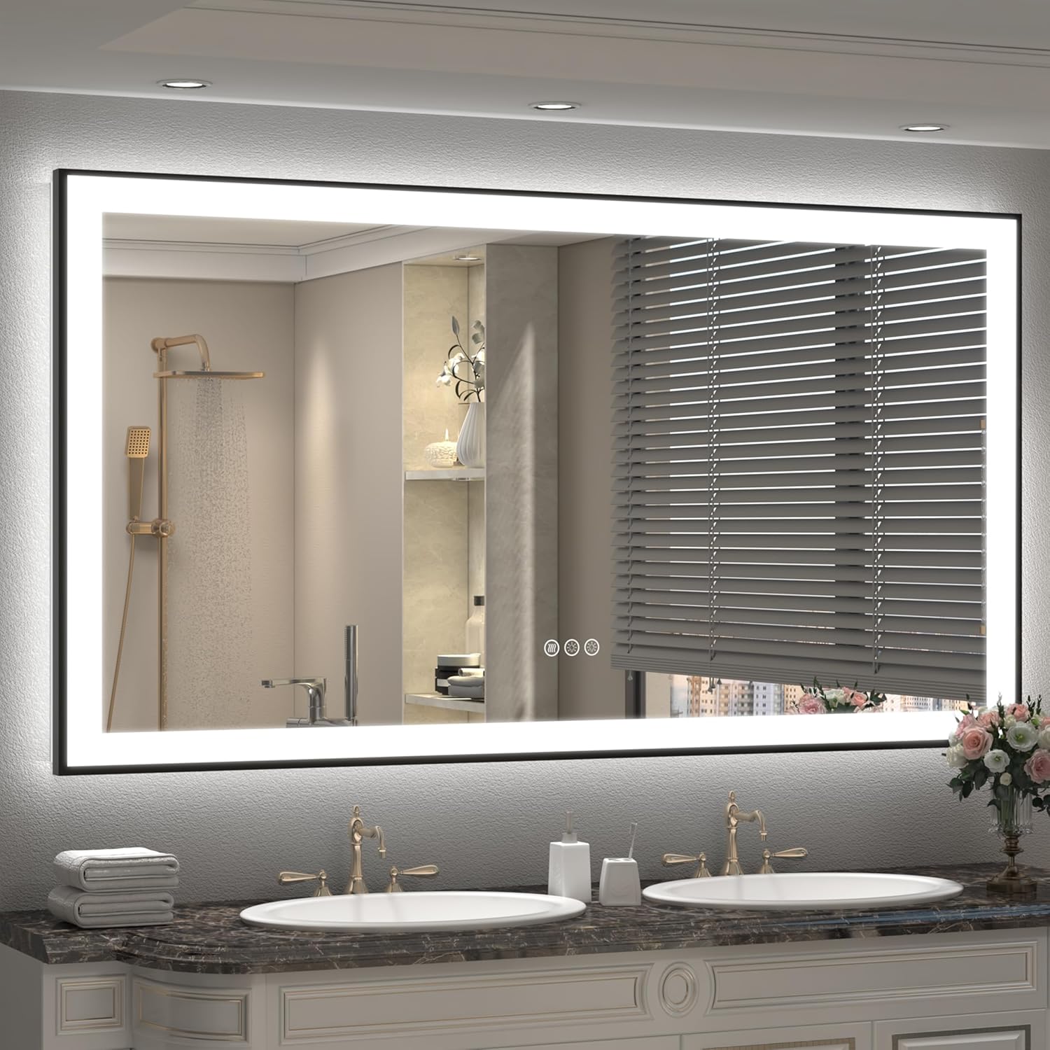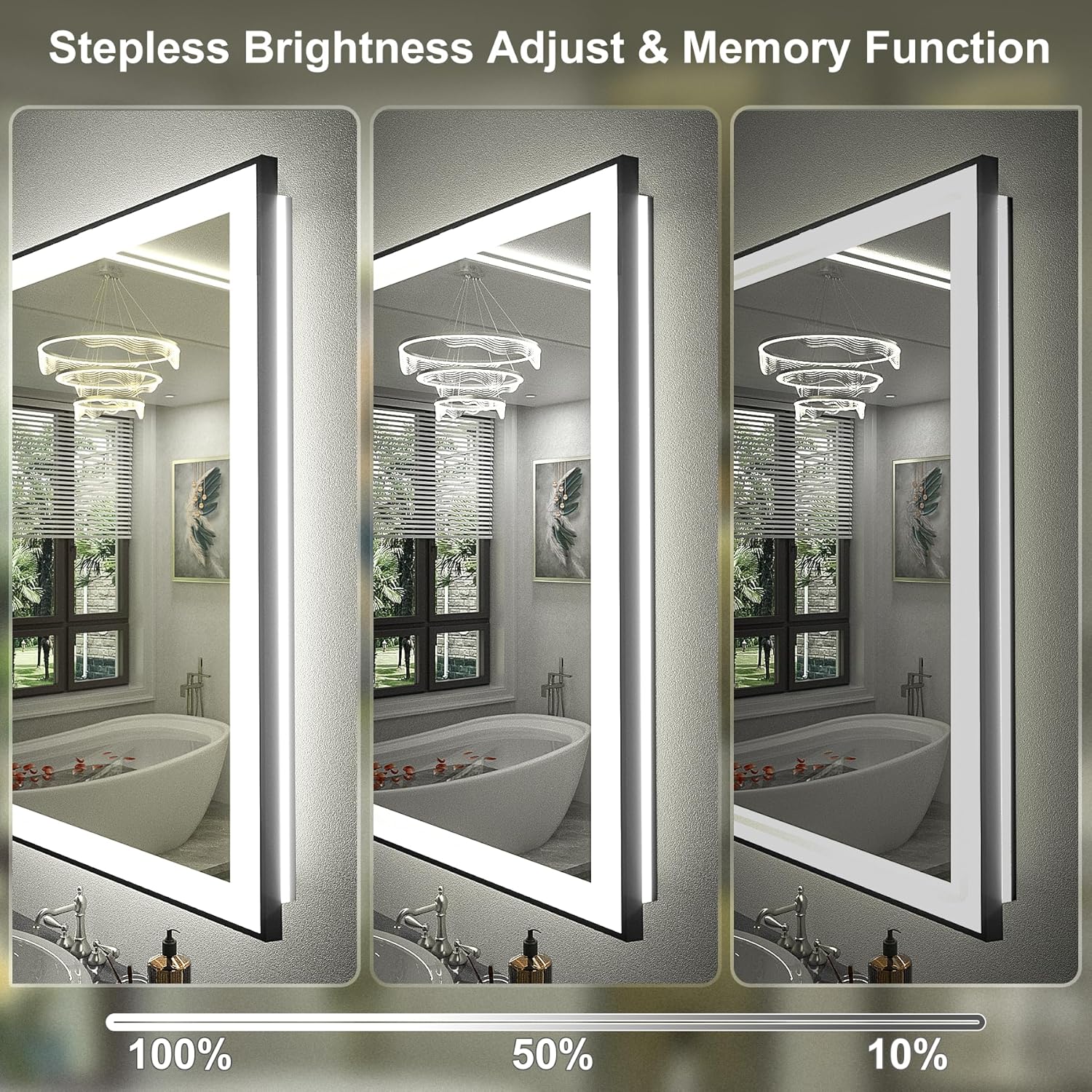 66×36 Black Framed LED Bathroom Mirror for Wall, Large Lighted Vanity Mirrors, Dimmable, Anti-Fog, Memory, Shatterproof, ETL Listed (Front Lights and Backlit)