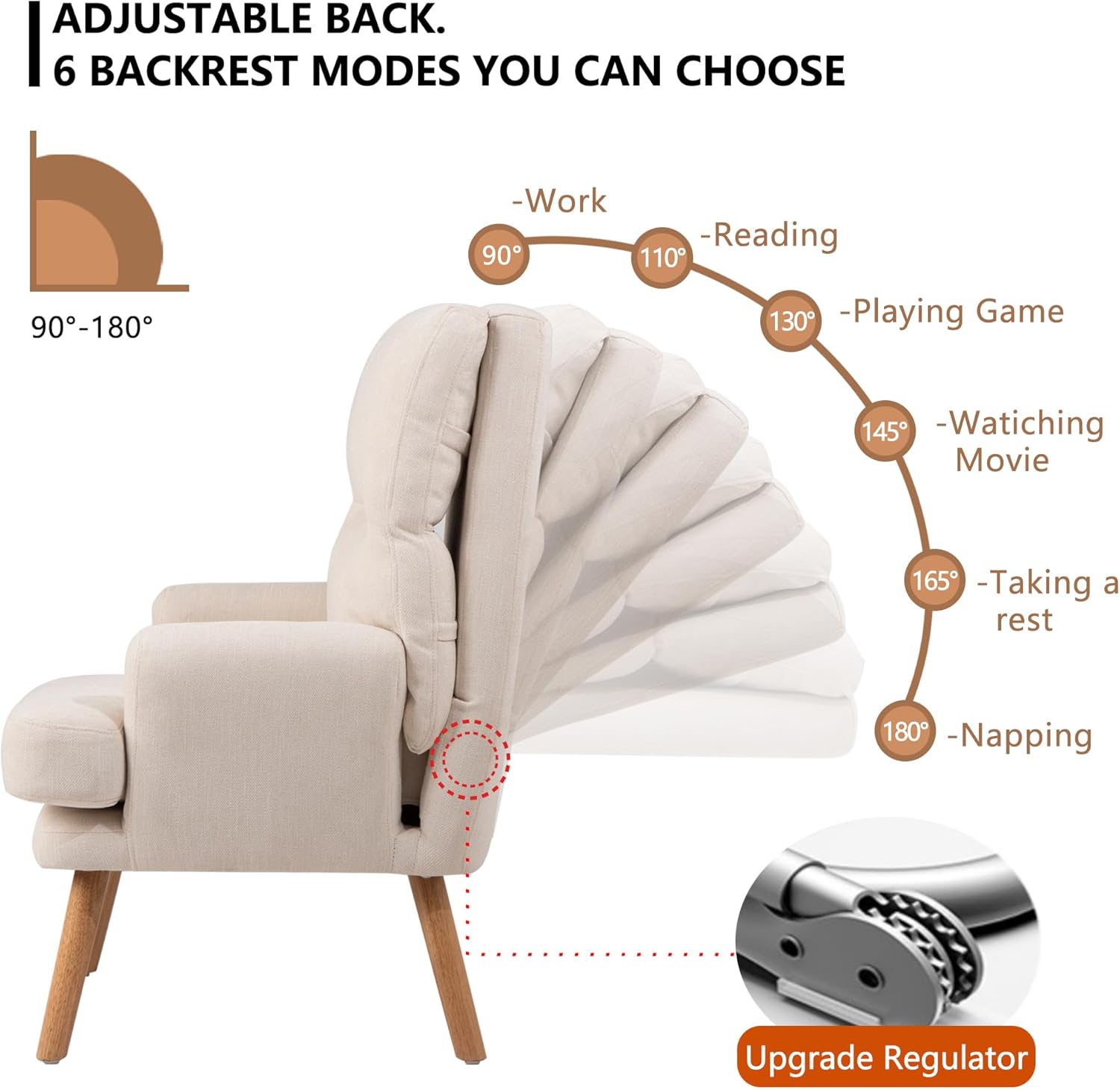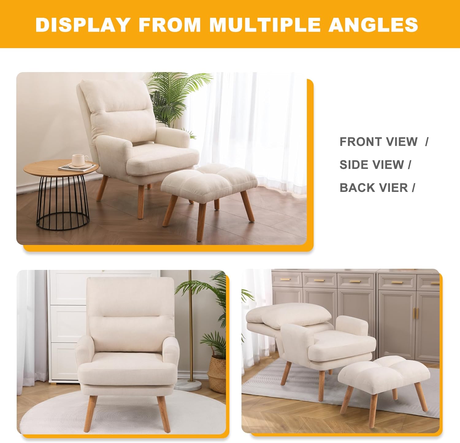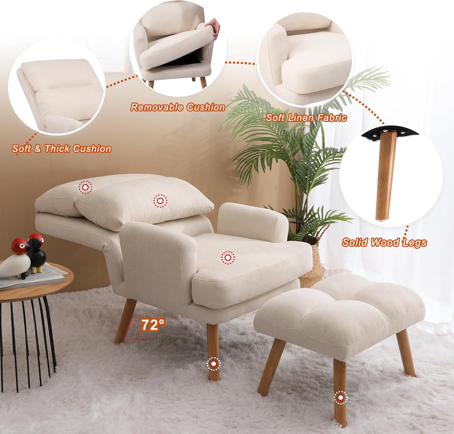 - Soft Accent Chair with Ottoman:The adjustable Accent Chair comes with a soft padded ottoman to get fully relaxed.This arm chair with ottoman is made of high-quality linen fabric and high-density sponge. Thickened double layer backrest provides comfort feeling,armrest allow you to rest better.
