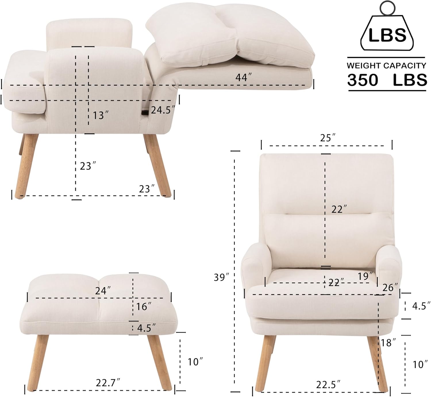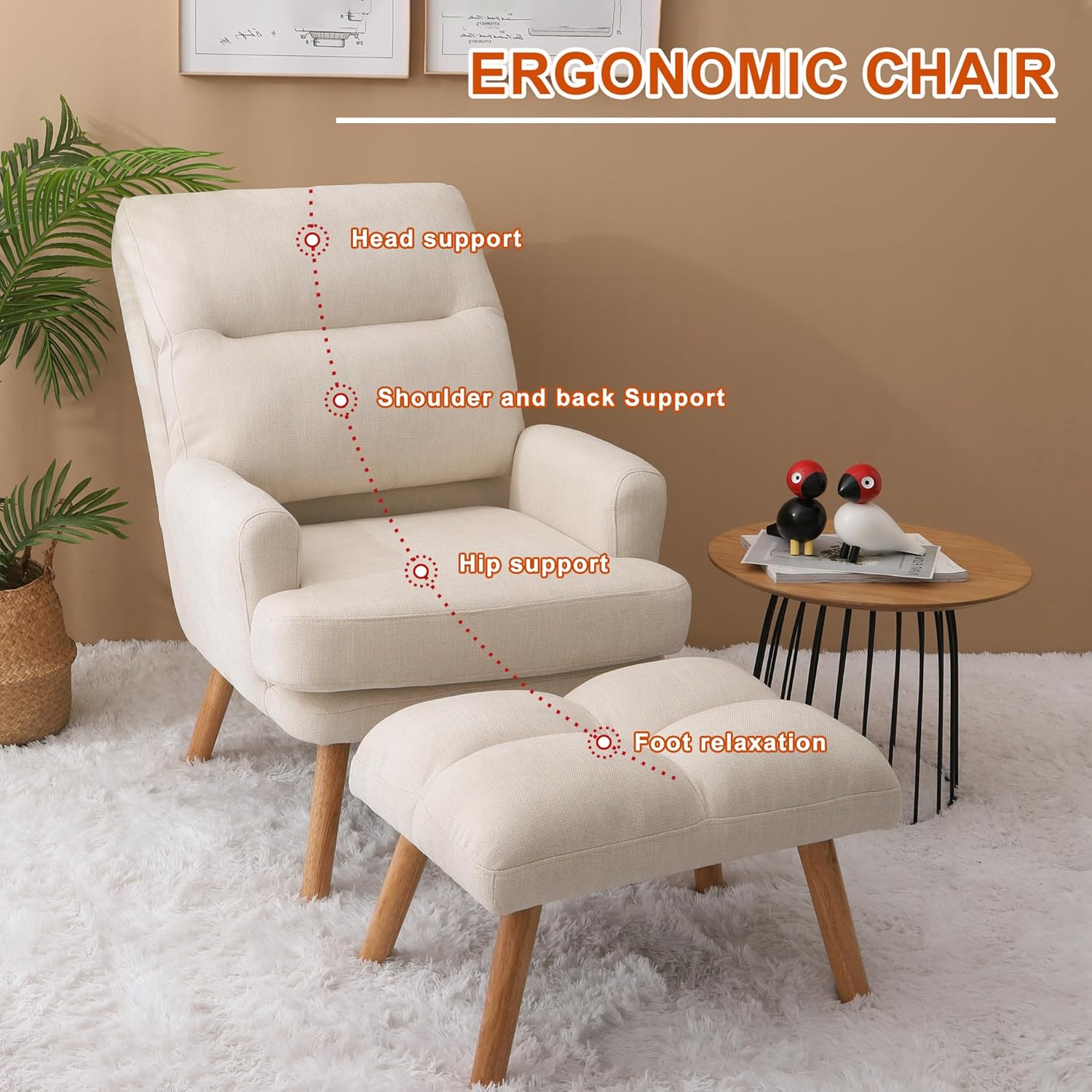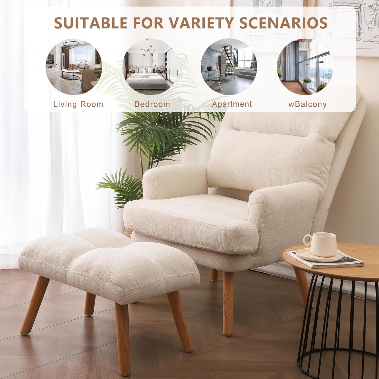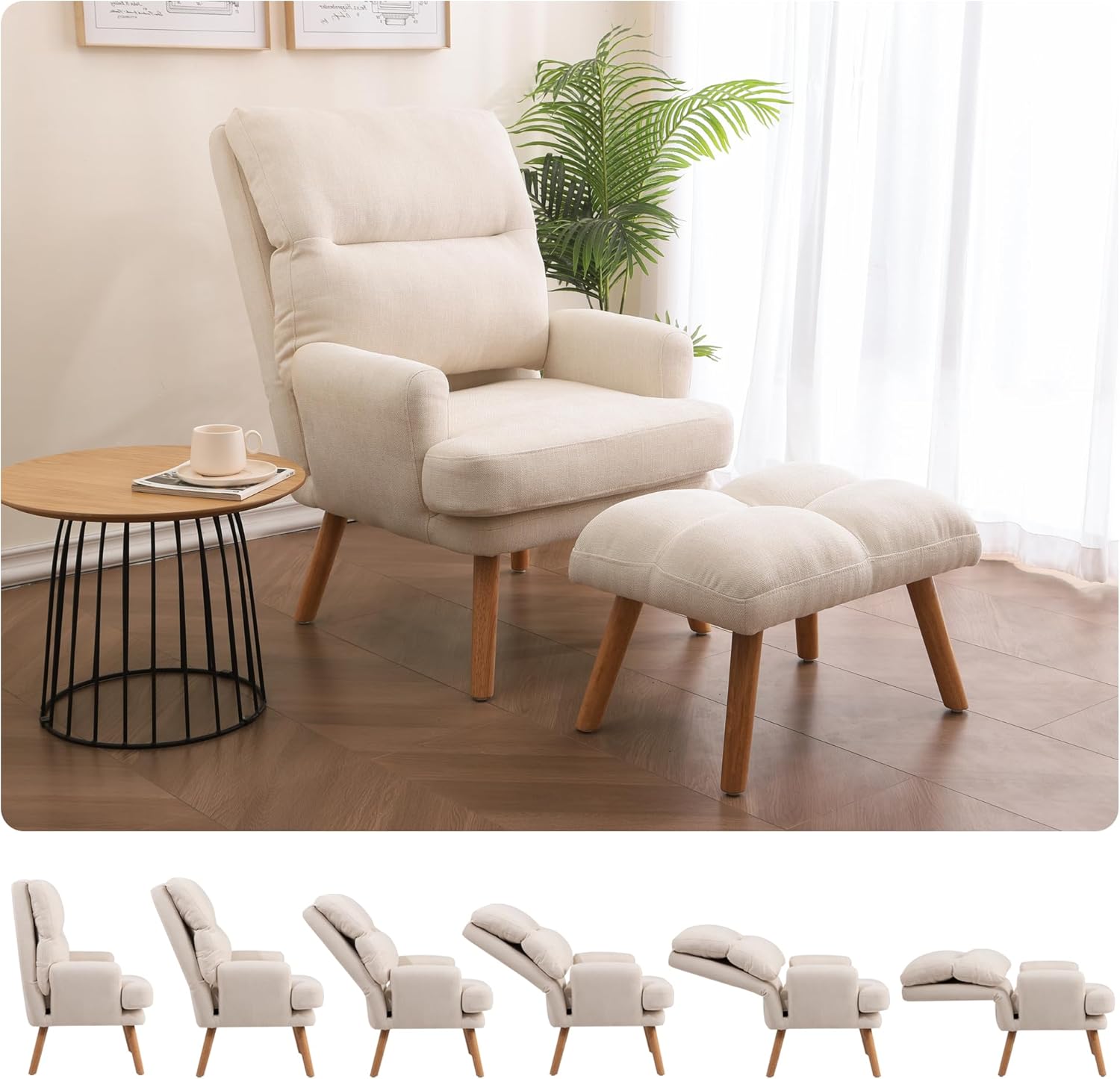 - Soft Accent Chair with Ottoman:The adjustable Accent Chair comes with a soft padded ottoman to get fully relaxed.This arm chair with ottoman is made of high-quality linen fabric and high-density sponge. Thickened double layer backrest provides comfort feeling,armrest allow you to rest better.